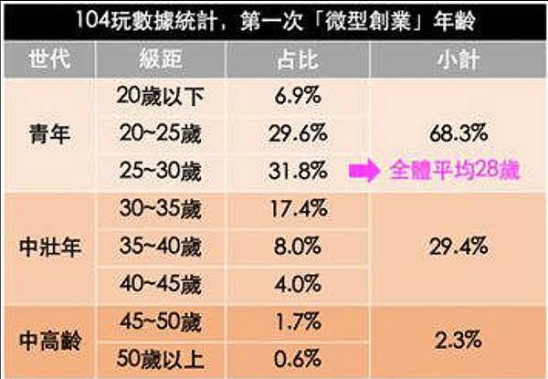 ▲微型創業年紀統計(圖/104玩數據提供 )