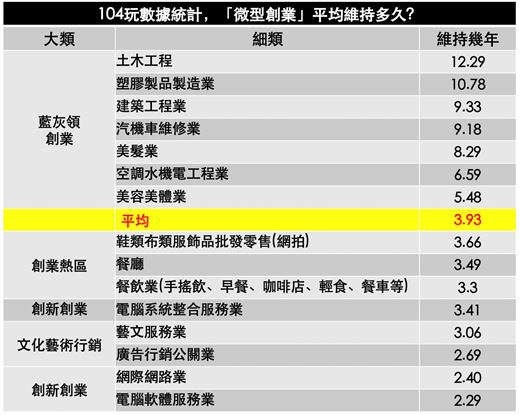 ▲微型創業平均維持多久一覽表(圖/104玩數據提供 )不領別人的薪水!創業究竟是夢想還是災難?數據曝殘酷現實 https://bit.ly/2W048qO