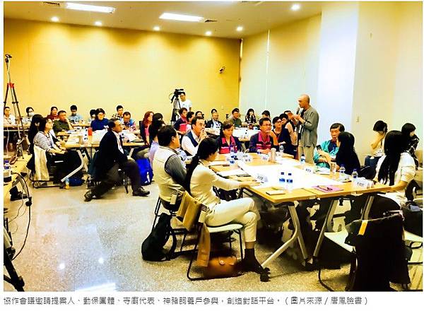 協作會議邀請提案人、動保團體、寺廟代表、神豬飼養戶參與,創造對話平台。(圖片來源/唐鳳臉書)
