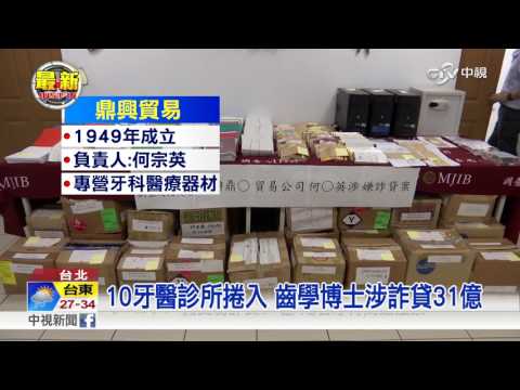 專營牙科醫療器材的「鼎興貿易」負責人何宗英涉嫌偽造買賣契約,從2008年起陸續向一銀、中國信託等13家銀行和中租迪和等6家融資公司詐貸逾31億元,台北地檢署指揮調查局北部機動站搜索鼎興和何宗英等人住處,約談何家父子等9人,漏夜偵辦後,凌晨依涉犯詐欺、偽造文書和違反《商業會計法》,並有共犯未到案等事由,將何宗英聲押禁見,總經理張譽瀚30萬元,會計廖立群5萬交保候傳,其餘員工因坦承犯行圴請回,他負責業務的兒子何宜哲也暫先請回。