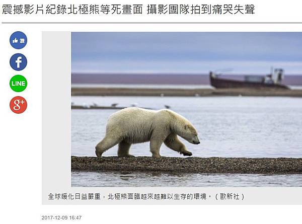 分享震撼影片紀錄北極熊等死畫面 攝影團隊拍到痛哭失聲到Facebook 分享震撼影片紀錄北極熊等死畫面 攝影團隊拍到痛哭失聲到Line 分享震撼影片紀錄北極熊等死畫面 攝影團隊拍到痛哭失聲到Google+
