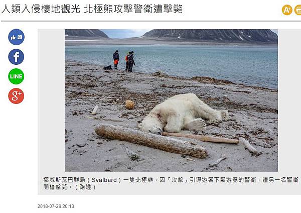 人類入侵棲地觀光 北極熊攻擊警衛遭擊斃 - 國際 - 自由時報電子報 - https://goo.gl/aVt6Lw