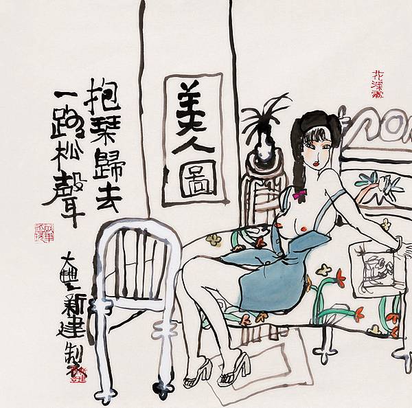 二十年後,新建筆下的女人已從小腳女人換成了都市女孩,以性感、妖媚、慵懶的圖示贏得了無數“粉絲”;那自由、真誠、直抒性情的筆墨,不僅影響了中國畫的發展,已然成為筆墨武林中的一派獨門劍法。