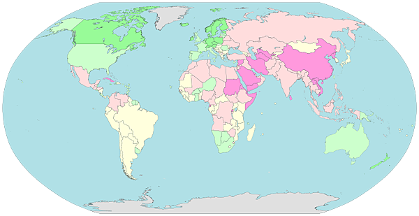 芬蘭、挪威、丹麥、荷蘭、瑞典、紐西蘭、澳洲、加拿大、牙買加、愛沙尼亞。
