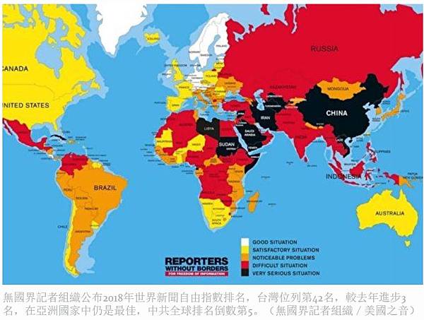 新聞自由排名 台灣亞洲第1 中國全球倒數第5 | 全球新聞自由指數 | 無國界記者組織 | 台灣記者 | 大紀元 - https://goo.gl/bhfMt1