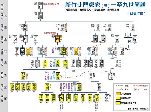 乾隆五十四年( 1789 )前後移入竹塹,依族譜的記載,鄭崇和「設教於淡,