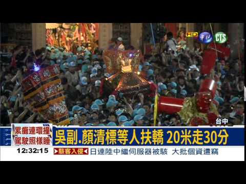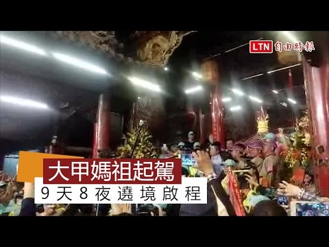 〔記者張軒哲/台中報導〕「砰!砰!砰!」在三聲起馬炮轟隆聲中,大甲媽祖鑾轎今夜緩緩啟程,展開9天8夜南下遶境活動,總統蔡英文主持祈安典禮,國民黨主席洪秀柱參加上轎典禮,深夜起駕由立法院長蘇嘉全與台中市長林佳龍等人扶鑾轎,預計將吸引來自全國各地數十萬名信徒參與,場面盛大。