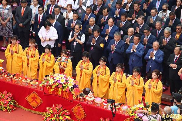 〔記者林宜樟/嘉義報導〕台中大甲鎮瀾宮媽祖到嘉義新港奉天宮遶境進香,今天(9日)上午舉辦祝壽大典,爆滿的信眾將奉天宮周邊擠爆,一睹媽祖女神風采,儀式莊嚴隆重,數萬名信眾到場參與,祈求國泰民安。