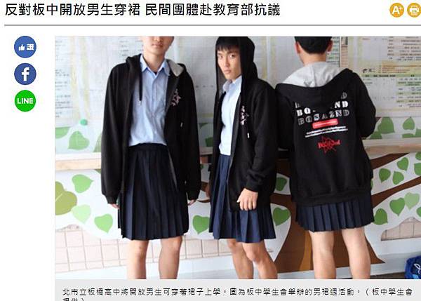 分享反對板中開放男生穿裙 民間團體赴教育部抗議到Facebook 分享反對板中開放男生穿裙 民間團體赴教育部抗議到Line
