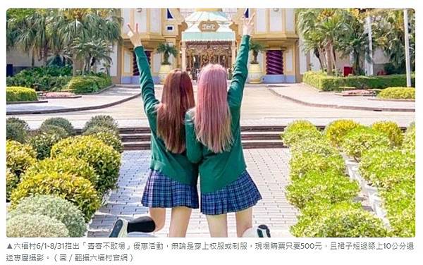 ▲六福村6/1~8/31推出「青春不散場」優惠活動,無論是穿上校服或制服,現場購票只要500元,且裙子短過膝上10公分還送專屬攝影。(圖/翻攝六福村官網)