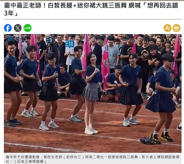 嘉中最正老師!白皙長腿+迷你裙大跳三振舞 網喊「想再回去讀3年」 - 生活 - 自由時報電子報