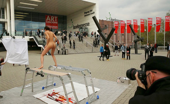 正妹藝術家Milo Moiré「全裸逛畫展」 看展觀眾讚嘆