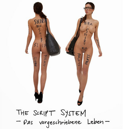 米洛.莫蕾具有西班牙和斯洛伐克血統,從童年開始學習繪畫,目前旅居德國,身兼心理學家、畫家、表演藝術家等多重身分。她2013年以名為「The Script System」的表演走紅,其內容就是她像一般上班族搭乘公車通勤,卻全身裸體,只在身體上用筆寫著BRA、SHIRT、PANTS等字樣。