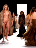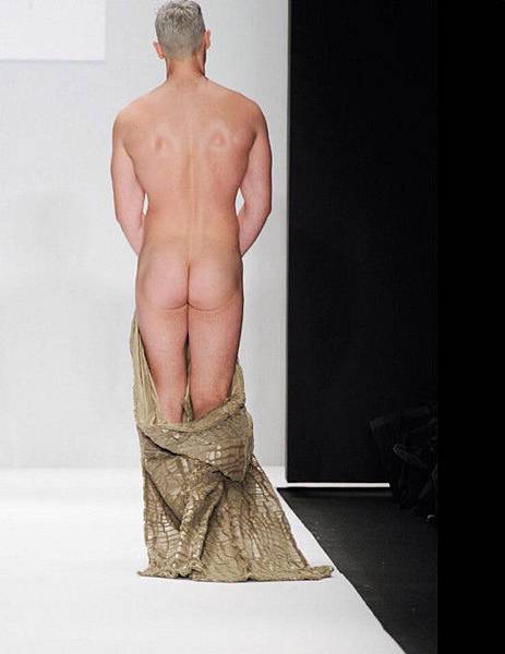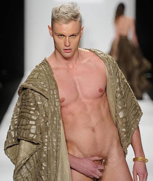 而男模們的夢靨(?)似乎還沒結束,這個流行看樣子已經吹到了紐約時裝週。出身自實境秀節目《決戰時尚伸展台》的設計師Michael Costello,就在由美國愛滋病健康基金會所主辦的時尚秀時,再讓男模全裸登台為慈善活動發聲。