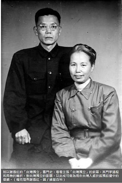 謝雪紅以她一生的血淚故事,證明了中共的不可靠。就算違反國際共黨的意志,只要中共站穩腳步,隨時可以變臉。這也是謝雪紅留給後世台獨運動者,最寶貴的資產。