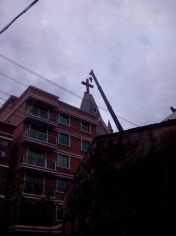 中共此前曾強拆浙江教堂的十字架。(網路圖片)