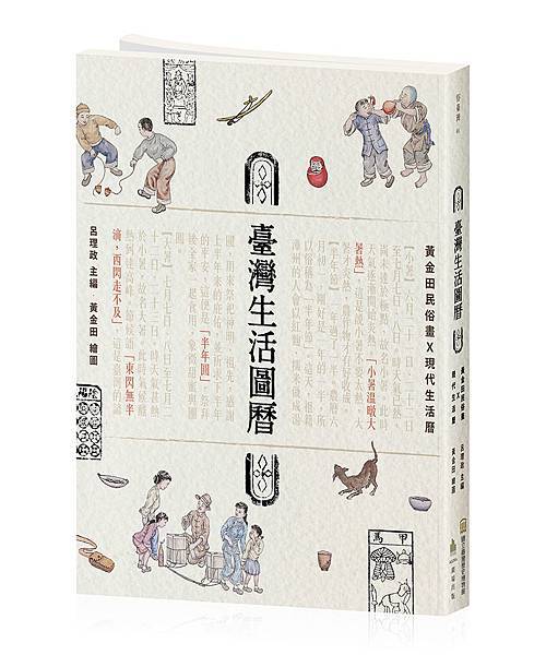 臺灣,匯聚了中華文化、日治文化、本土文化及西洋文化,光是從月曆上標示的24個節氣、農曆節慶和西洋節慶等等,即顯現出人們生活態樣的豐富性和多元化。為了讓更多人深度了解過去與現在市井生活的軌跡和實景,廣場出版精心推出《臺灣生活圖曆》一書,以陽曆月份為單位,節氣為軸線,系統性的介紹本土的慶典、禮俗、童趣、農漁民生活和庶民文化,全書搭配黃金田老先生細膩又傳神的彩色插圖,絕對讓讀者愛不釋手,可謂一本臺灣人專屬的的「農民曆」與「清明上河圖」。