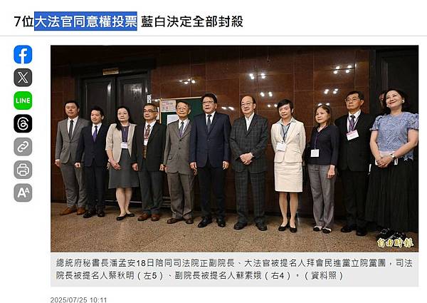 7位大法官同意權投票 藍白決定全部封殺 - 政治 - 自由時報電子報