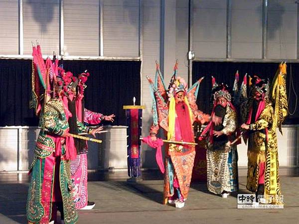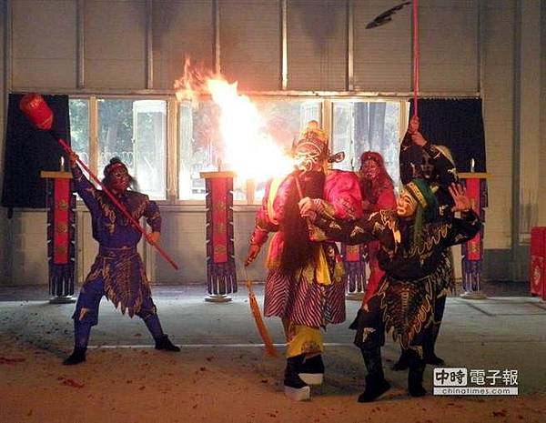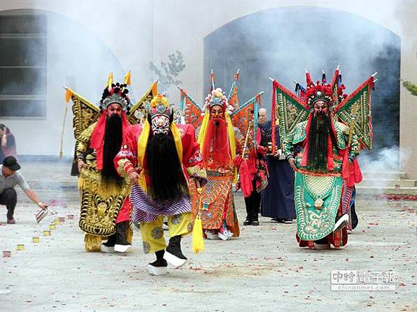 昨天,團員扮演的五福大帝,在場內循古禮驅魔趕邪「破台」,並由國立傳統藝術中心副主任陳兆虎與彭宏志安龍點睛,完成認祖歸宗