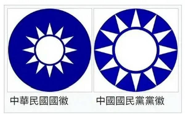 中華民國國徽跟中國國民黨的黨徽差別在於中間圓圈的大小,國徽上圓心的比例是1:3,黨徽卻是1:1;圖案都一樣,差在太陽大小不同,真的有點難分。從國父紀念館裏頭應該標記黨徽的勳章,翻過來都標成國徽,就可以知道連廠商都分不太出來,館方承諾改進。
