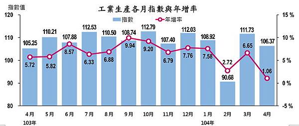 台灣4月份對外經濟數據表現不佳,不僅財政部4月海關出口金額減少11.7%,經濟部日前發布4月工業生產指數,製造業生產年增1.15%,也是近15個月以來的最低增幅。