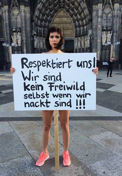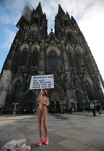 女藝術家在科隆大教堂前脫光 抗議性侵行為