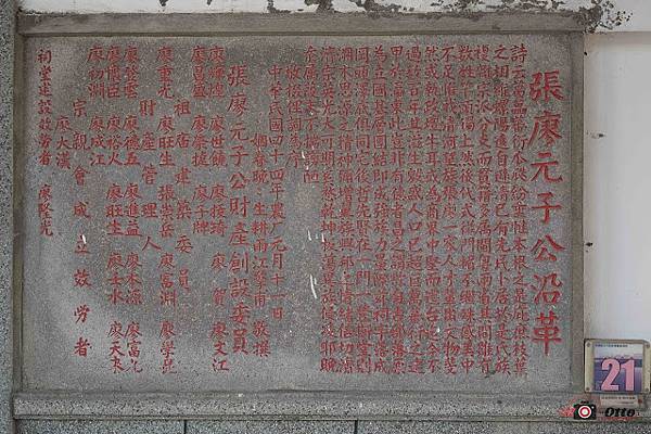 ▲民國44年 (公元1955年)整建時所立「張廖元子公沿革」碑。