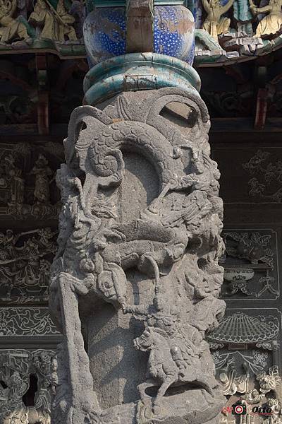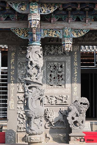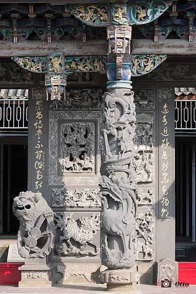 ▲▼一對龍柱與石獅形成中央視覺焦點。