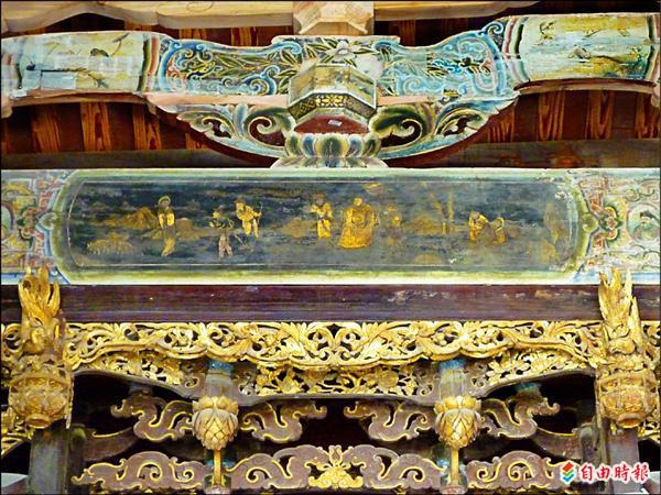 | 北埔姜氏家廟的擂金彩繪,為藝術價值極高的國寶級作品。(記者廖雪茹攝) |