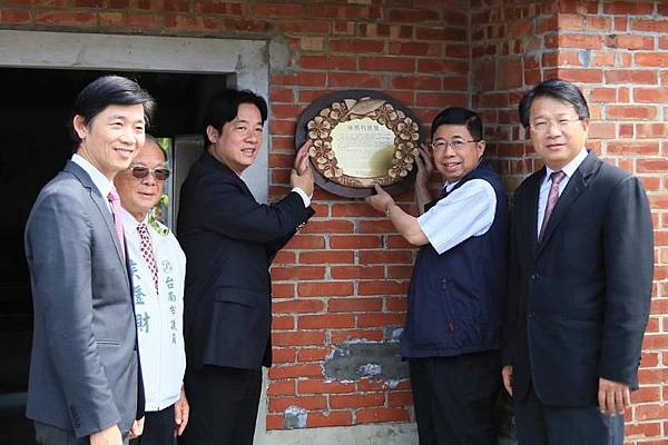 分享吳三連、吳修齊與吳尊賢故居,位於學甲區光華里新頭港聚落,賴清德昨偕同副市長曾旭正、文化局長葉澤山等人到場與吳家代表在故居掛上紀念牌。