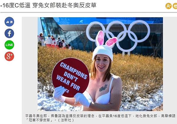 -16度C低溫 穿兔女郎裝赴冬奧反皮草 - 國際 - 自由時報電子報 - https://goo.gl/1NecM9