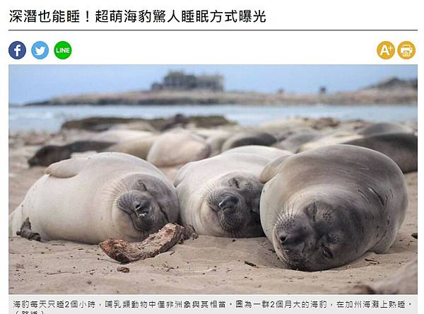 〔即時新聞/綜合報導〕「睡眠」對於人類乃至整個動物界而言,都是不可或缺的維生條件,我們一生中大約有三分之一的時間都在睡眠中度過。但相比人類,有些動物的睡眠時間明顯少上許多,海豹即是其中之一。