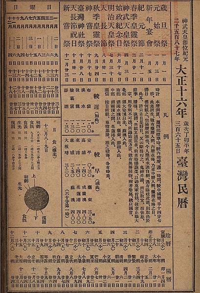 臺灣自漢文化傳入以來,對於日月蝕也延續了相關的習俗。日本時代記載臺灣人有「蟾蜍蝕月」、「天狗食月」的傳說,一直到1920年代,還有月蝕居民敲鑼打鼓遊街喧鬧、燃放爆竹的記錄。但隨著臺灣邁入現代化,教育日漸普及,這類迷信也逐漸消失,甚至在發行的《臺灣民曆》裡,直接刊出預告月蝕的發生時間與蝕虧(如圖)。