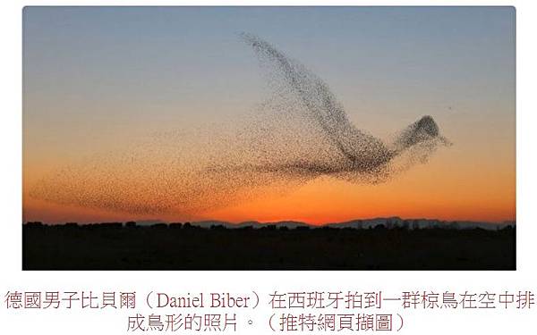 德男拍到鳥群在空中排成鳥形 攝影大賽奪獎 | 椋鳥 | 群行行為 | 照片 | 大紀元