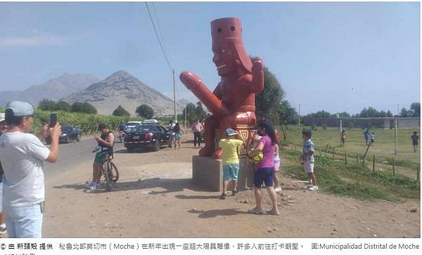 秘魯北部莫切市(Moche)在新年出現一座超大陽具雕像,許多人前往打卡朝聖。 圖:Municipalidad 祕魯超大陽具雕像「新根初上」眾人朝聖 市長:還要再放10個 https://bit.ly/3FYvcsf