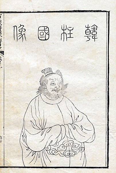 清《古聖賢像傳略》之韓擒虎像。(公有領域)