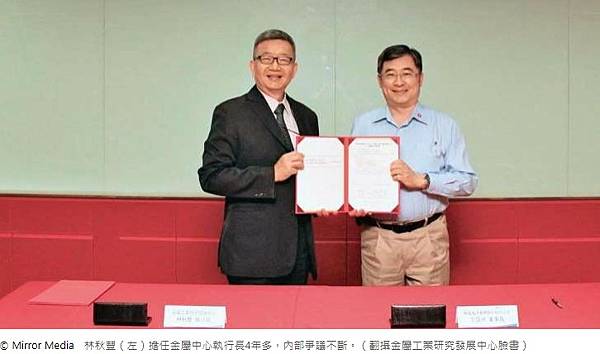 林秋豐(左)擔任金屬中心執行長4年多,內部爭議不斷。(翻攝金屬工業研究發展中心臉書)© Mirror Media 林秋豐(左)擔任金屬中心執行長4年多,內部爭議不斷。(翻攝金屬工業研究發展中心臉書)
