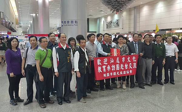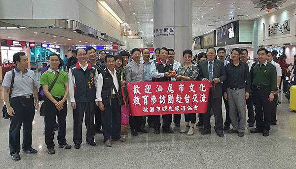 4/20下午廣東省汕尾市文化教育參訪團19位,由劉副市長領隊赴台灣交流,桃園觀光協會到機場迎接之況!