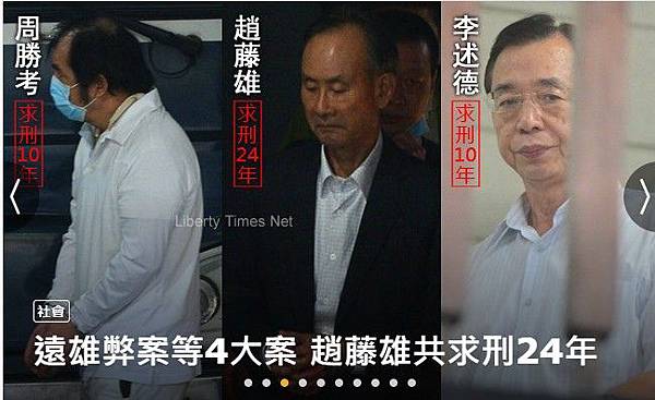 趙藤雄所涉掏空遠雄人壽案、新北市新莊及土城土地開發弊案,趙分別被依財報不實、行賄等罪,合計共求刑24年。