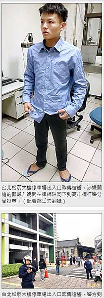 台北松菸大樓停車場出入口昨傳槍響,涉嫌開槍的郭峻升晚間在律師陪同下到高市楠梓警分局投案。(記者姚岳宏翻攝)