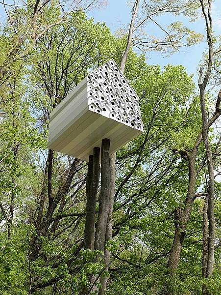 半暴露的結構被中心樹木巨大的枝葉覆蓋。建築內部高5米,這個開放的巨大「樹屋」中有許多壓縮和封閉的空間,只有半蹲、爬行的小朋友才能通過。為了保護在建築中活動的小朋友,建築師沒有設計過多的障礙物和欄杆,而是在地面上覆蓋了一層橡膠墊,這樣可以減輕一些意外磕碰對兒童的傷害。