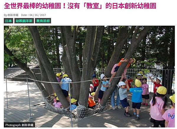 手塚夫婦創造出這個空間,讓小朋友自由生長、探索,不受任何拘束,甚至不害怕跌倒。這裡沒有過多的保護,讓小朋友透過挫敗來學習如何生存,顛覆了一般將小朋友送去幼稚園就是受到很完好照顧的想像。 教育不應該只限於課程設計的安排,空間給人的感受是最直接而且無形的。全世界最棒的幼稚園!沒有「教室」的日本創新幼稚園