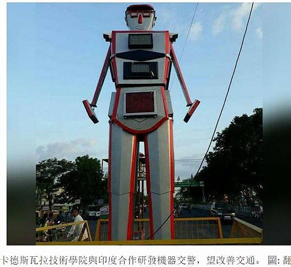 根據當地民眾拍攝的影片與消息指出,印度爾市中交通最為繁忙路段上,出現了一個約4.27公尺高的機器交警指揮交通。