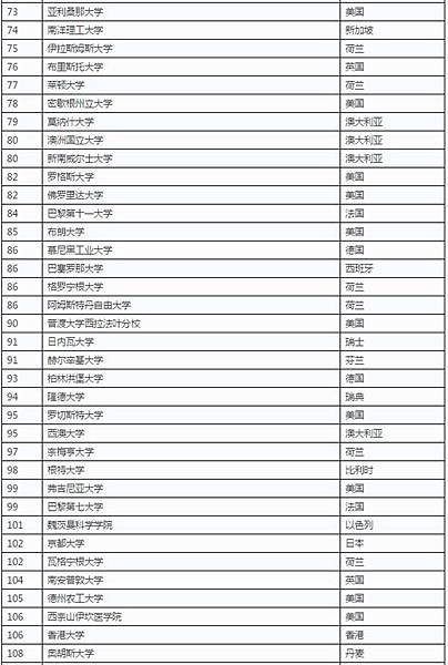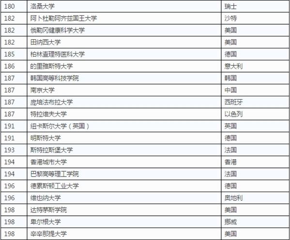 緊接在後的第4名是香港科技大學,排名與去年持平;第5名為新加坡南洋理工大學,第6名荷蘭馬茲垂克大學,第7名為美國加州大學爾灣分校。
