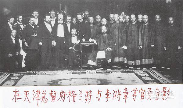 在天津總督府格蘭特與李鴻章等官員合影。(胡漢輝提供)