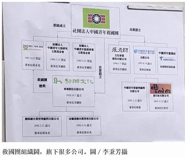 救國團組織圖,旗下很多公司。圖/李秉芳攝