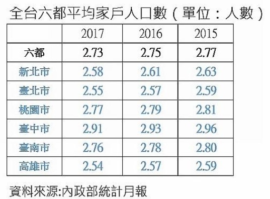 賴志昶指出,家庭平均人口數持續下探,主要有三大原因,一是傳統一家三口為主的家庭模式,隨著社會結構發生改變已成為過去式,加上房價高漲、人口少子化等因素,令不少縣市尤其是都會區,二人成家甚至單口成家者都不在少數。