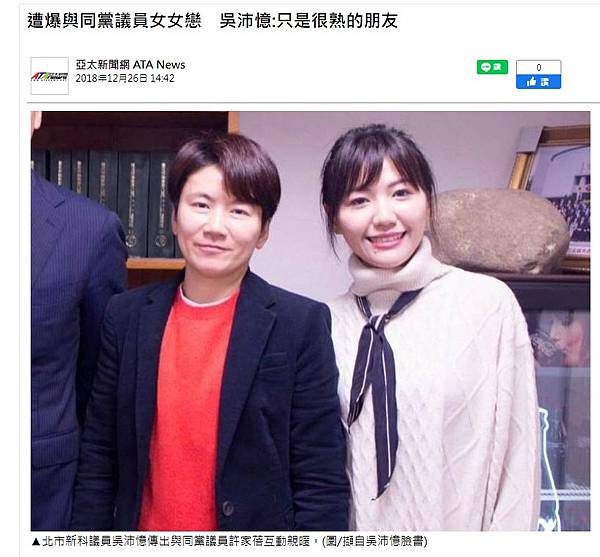 遭爆與同黨議員女女戀 吳沛憶:只是很熟的朋友 | 亞太新聞網 ATA News