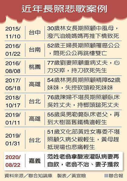 近年長照悲歌案例 資料來源/聯合知識庫 製表/黃宣翰