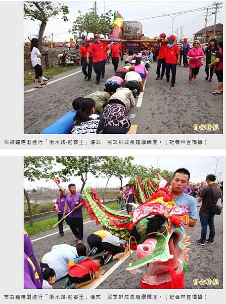 蔡易餘表示,「衝水路、迎客王」是布袋地區傳統,有百年以上歷史,他跟著參與「衝水路」,因大排水位幾乎滿到脖子,十分刺激。